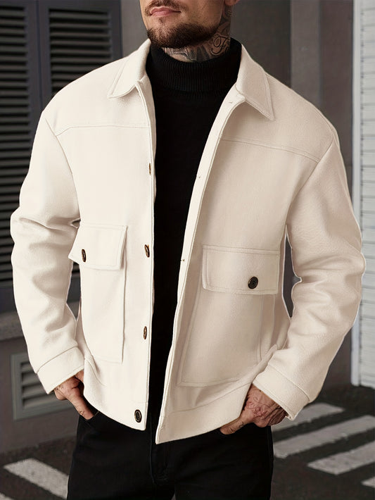 Casual Jacket - Men - Button Closure Jacket with Chest Pocket